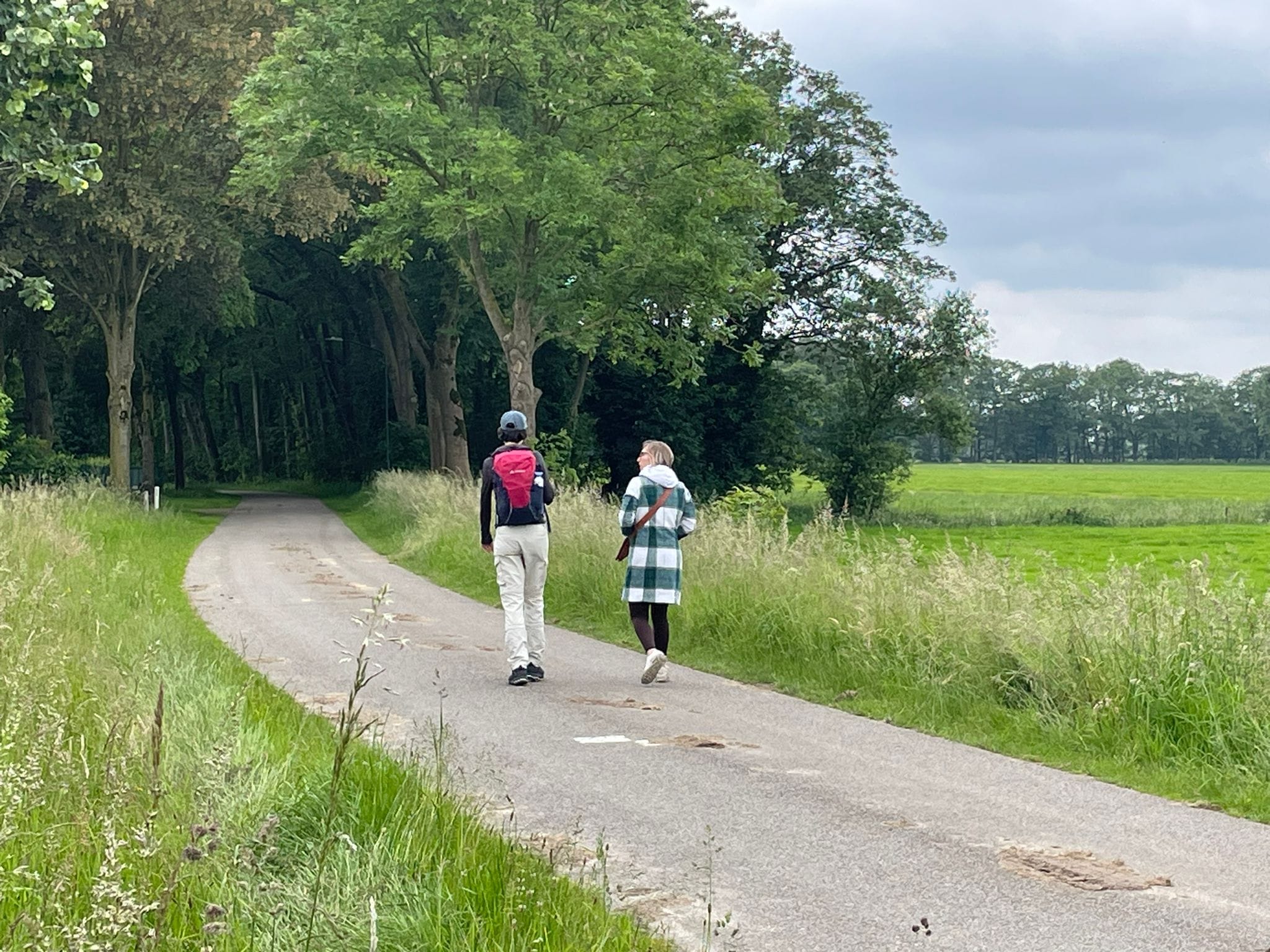 Er is geen pauze ingepland, maar we stoppen onderweg wel regelmatig om te wisselen van gesprekspartner en/of iets te drinken (zelf meenemen voor onderweg).