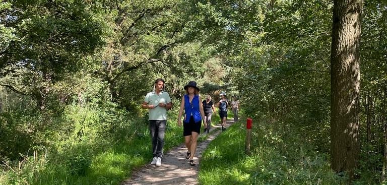 We wandelen over een afstand van ca 5-6 km, in totaal ca 1,5 uur. We lopen in het bos of over de heide, dus trek stevige (waterdichte) wandelschoenen aan.